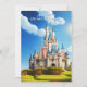Belo convite encantado ao castelo com bonito Castelo da Princesa rosa e azul cercado por adoráveis jardins e céu azul claro com nuvens brancas indefinidas. Personalizar para qualquer idade.