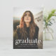 Convite simples de festa de formatura com a fotografia vertical do formando com "formando", apresentado em caracteres brancos modernos. Personalize o convite para festa de formatura de fotos adicionando o nome do formando, o nome da escola e o ano de graduação. O convite reverte para exibir os detalhes da sua festa de formatura com um plano de fundo cor-de-rosa pincelado.