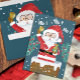Um convite de festas de Natal rosa e bonito com um Papai Noel caprichoso. © ArianeC Ilustrações — Todos os direitos reservados