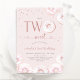 Rosquinhas cor-de-rosa-claro, dois convites de festas de segundo aniversário doces. Design de tendências cegas com rosquinhas cor-de-água rosa e branca. Possui fonte de script cardíaco e tipografia dois. Você pode escolher convites impressos e/ou fazer o download instantâneo do modelo digital. Perfeito para uma na moda feminina no segundo dia de festa.