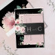 Elementos: cor d'água vibrante, em cor de rosa e em branco contra fundo preto. Os nomes são grandes em uma fonte clássica com um layout moderno. Cores: preto, rosa, esbranquiçado, verde. Temas: moderno, elegante, outono, inverno, escuro, moderno, jardim, botânico, romântico, ao ar livre, jardim. Coleção: Blush & Black Elegant Floral Watercolor Collection Tipo de Produto: Convites para Casamento
