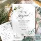 Aprecie seus hóspedes com este convite de casamento elegante e único com um design simples e limpo, uma caligrafia manuscrita linda e detalhes delicados de cor d'água verde. Capacidade de mudar da introdução "junto com as famílias" para "junto com os pais", "junto com a alegria do excelente", "junto com o prazer do excelente", "pedir o prazer de sua empresa no casamento", ou qualquer outro texto que você quiser! Para trás e para a frente com manchas de aquarelas moles em tons verdes. Design com a frase "Vamos nos casar" em uma caligrafia única mostrando seus detalhes de casamento.