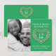 Convite de aniversário de casamento de 12 anos com contas verde-jade ao redor de uma foto em forma de coração. Bela conta de jade efeito em uma forma de coração impressa, gráfico de aniversário de casamento de décimo segundo convite personalizado com os detalhes da sua festa de aniversário de casamento e foto de casamento do casal feliz. Gráficos e design originais de contas verde-jade por Sarah Trett para www.mylittleeden.com e www.mylittleedenweddings.com