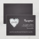 Coração de papel no quadro-negro com cartão de recepção de casamento com monograma apresentando um coração de amor de papel de caderno com furos ao redor dele no quadro-negro preto. No coração estão suas iniciais. Este design de modelo de casamento monogramado rústico e caprichoso é completamente personalizável e é perfeito para um casamento casual, especialmente para professores. Texto em branco usando uma fonte que se assemelha à escrita à mão.