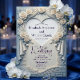Convites Coração de Tapeçaria de Rosa Azul Romântica Esculp