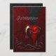 Um fundo preto do damasco com uma folha de prova do damsk vermelho escuro, rasgada para mostrar o preto. Na parte inferior do rasgo um coração gótico do estilo decorado com um vermelho weeping do rosa rasga. Um vermelho e um vôo do colibri do creme atrás do coração, e preto rodam decorando a parte inferior. Um design original, incomum - não apenas para uma festa de noivado. Personalize o texto no damasco preto de volta ao ajustado sua ocasião.