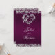 Esta design romântica apresenta um fundo de ameixa roxa com bordas reluzentes, um delicado coração de rolagem prateada, roteiro em fontes elegantes. Perfeito para o casamento simples e elegante. Também disponível com diferentes planos coloridos para as cores do tema do casamento. (O brilho é simulado no trabalho de arte). Projetado para coordenar com a Coleção "Corações Românticos e Casamento com Largura". Para alterar os detalhes, clique em "Personalizar". Para mover o texto ou alterar o tamanho, a fonte ou a cor do texto, clique em "Clique para personalizar mais"