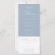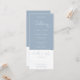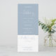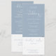 Um convite de casamento completo com tipografia elegante em script de coração em um fundo azul empoeirado. O convite inclui um cartão de RSVP que pode ser cortado e detalhes das informações dos convidados. Criado por Thisisnotme