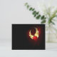 coração vermelho vivo de um anjo com asas de ouro brilhando no fundo vermelho-radiante escuro decorado com um padrão.