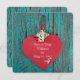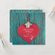 Coração de madeira vermelha em madeira de celeiro pintada de turquesa para renovação de votos.