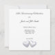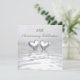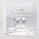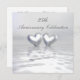 Um convite de aniversário de prata de 25 anos prateado com dois corações de prata flutuando na água. Personalize o texto de exemplo no verso com suas próprias informações para o seu evento.