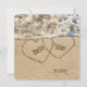 Corações na areia da praia para convite de casamento na praia com nomes personalizados em corações.