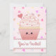 Convites personalizados de festa de aniversário fofos com um cupcake kawaii vermelho e rosa, um design perfeito para crianças. Adicione seus detalhes em uma variedade de fontes, incluindo caligrafia e uma fonte bonita e manuscrita. Muito chique e elegante. Este é um remake de um produto antigo onde o fundo não era muito legível.
