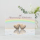5 de aniversário de convite com a minha imagem de dois corações de madeira flutuando na água sob um arco-íris.