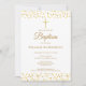 Elegante batismo ou batizado com corações dourados apresentando delicados corações dourados com uma cruz de ouro. Personalize este convite elegante e neutro em relação ao gênero com as informações especiais do seu batismo ou batizado em letras douradas sofisticadas. Criado por Thisisnotme©