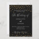 Um fundo preto decorado com corações ouros. Personalize e adicione seus nomes e detalhes. Fundo: fundo preto e corações ouros.
