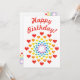 Um belo convite de aniversário, colorido, com muitos corações nas cores do arco-íris, com o texto "Parabéns". Um convite feliz e alegre para seus amados.