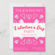 Este é um convite de festas moderno, na moda, Dia de os namorados. É em cor-de-rosa-quente e vermelha, com script de tipografia na moda e padrão cardíaco fofo. Ele tem a mensagem "The Johnson's Dia de os namorados Party" (O Partido da Johnson) e tem espaço para você adicionar os detalhes da festa e do RSVP. Este design de chic é perfeito para a sua festa de Dia de os namorados. Para personalizar, basta digitar seu nome e informações da parte na caixa de texto personalizar este texto. Aqui você também pode mudar o resto do texto se quiser. Para alterar a cor ou a fonte, dê uma olhada na ferramenta de edição de design. Se você precisar de ajuda com a personalização, produtos correspondentes ou para um projeto personalizado, entre em contato comigo via chat zazzle ou email: ursuladawnmoon@gmail.com