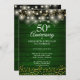 Apresentando luzes bonito de cordas e corações delicadas de ouro adoram confetti em um pano de fundo verde rústico de madeira. Personalize com suas informações especiais de aniversário de 50 ouros em caracteres quânticos. Projetado por Thisnotme©