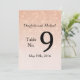 Corações espalhados sutilmente caem sobre este delicado cartão de Número da Mesa rosa empoeirado em um estilo gradiente "ombre". Este item faz parte da Coleção de Casamento Scattered Hearts Dusty Rose. Personalize com os detalhes do seu casamento selecionando o botão "Personalizar" e editando o texto de exemplo mostrado no modelo à direita da tela. Você pode alterar as fontes e tamanhos de fonte, bem como mover ou reorganizar o texto ou alterar a redação para atender às suas necessidades e preferências.