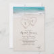 Apresenta dois corações na areia e as iniciais da noiva e do noivo com água turquesa e fundo branco de praia, convites de chá de panela de excelente para o casamento na praia de verão ou casamento de destino tropical.