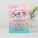 Corações Cor-de-Rosa Moderno Salmão de Prata Teal Doce 16 Convites.