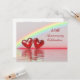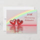 Convite de aniversário de 40 anos com um arco-íris e dois corações rubis brilhantes flutuando na água. Personalize o texto de exemplo no verso com suas próprias informações para o seu evento.