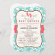 Um design de chá de fraldas, bonito e personalizado, a cor-de-rosa-coral, azul-aqua e padrão de hibisco tropical branco, com letra castanha. Design neutro de chá de fraldas para bebês ou chás de meninas! Nossa loja, Favoritos e decoração, especializa-se em decorações de eventos, favoritos para festas e convites!