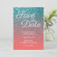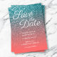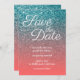 Convites Coral e Teal Ombre Glitter Salvar a Data