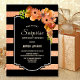 Convite de festas de janto de aniversário floral de surpresa floral com brilho negro e falso.