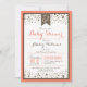Personalize este elegante e formal alaranjado coral, branco, e esticado castanho, um belo convite de chá de fraldas confetti. Pode ser personalizado para chás de fraldas de bebês. Convite de classe redonda do ano perfeito para primavera, verão, outono ou chás de fraldas modernos de inverno.