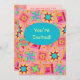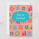 Convide um amante de colcha ou colcha com este convite colorido de colcha totalmente personalizável. Personalize completamente na frente e atrás para adicionar suas próprias palavras, nomes e outras informações. Esta arte original de colcha faz um convite vibrante. A arte quilt baseada na arte original apresenta blocos de manta de retalhos favoritos mais blocos únicos em cores dinâmicas e vibrantes de laranja, amarelo, rosa, turquesa, e verde limão sobre fundo laranja de coral para uma bela paleta de cores. Um azul azul-azul-turquesa está na frente do cartão para dizer "Você é Convidado" ou outras palavras da sua escolha. Mostre o seu amor por colchar com estas designs de arte colcha com outros produtos de arte colcha. A arte quilt é uma arte original da designer de tecidos e mantas Phyllis Dobbs e está em uma coleção de tecidos da Quilting Treasures. Esta arte está disponível em outros produtos e em vários planos coloridos. Há mais produtos disponíveis na loja Business da Phyllis com Flair. Corresponder com carimbos coordenadores, envelopes, adesivos e etiquetas de endereço de retorno.