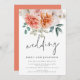 Coral Peach Peonies Florals Escrevem florais de florais coloridos de Verão Elegantes vindos do alto. Casamento está em um script de estilo de escrita manual de tendências definidas. Personalize facilmente o resto do texto para seus próprios detalhes. Para a conveniência de seus convidados para o rsvp e ver mais detalhes, eles podem digitalizar o código QR que leva ao seu site de casamento. Seu código QR será gerado automaticamente para atualizar o código de amostra no design, quando você simplesmente alterar o URL de amostra no modelo com o URL do seu próprio site de casamento.