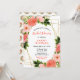 This fun and whimsical bridal shower invitation features watercolor coral pink red roses and foliage on a gold geometric frame. The text combines handwritten script and serif fonts for a stylish and modern look. This is perfect for a spring or summer rustic bridal shower.