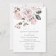 Este convite romântico e elegante do casamento caracteriza um silenciado, o olhar do vintage cora buquê cor-de-rosa com peônias e rosas da aguarela, e obscuridade - folha e as folhas cinzentas, em um fundo branco. A parte traseira do convite é um delicado cora cor.