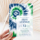 Este convite de tinta azul e verde apresenta cores brilhantes e texto personalizado. Use o formulário modelo para adicionar seus detalhes. O recurso Personalizar permite alterar o estilo da fonte e adicionar ou excluir texto.