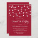 Convide a família e os amigos para o seu evento com este doce e mesquinho convite de dezesseis pessoas que apresenta luzes brancas de cordas suspensas em fundo vermelho. Personalize adicionando nomes, hora, data, local e outros detalhes do evento. Este convite de cordas é perfeito para doces dezesseis festas.