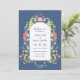 Flores silvestres deliciosas em clara e aquarelas brilhantes estão organizadas em torno do arco central do convite. A caligrafia e as fontes modernas sans serif combinam-se para uma aparência moderna e simples, em harmonia com as flores doces e silvestres. As fontes de tinta azul escura acentuam ainda mais a sensação selvagem e natural. Colocado sobre fundo de azuis do País. Personalize as fontes, se desejar, mas para reter as hastes na caligrafia, mantenha os símbolos em forma de retângulo. A cor da tinta para a inscrição pode ser alterada dentro da ferramenta design.