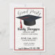 O convite para a graduação moderna apresenta um tassel vermelho no boné de formatura preto e é cortado numa faixa vermelha com brilho dourado e fundo branco. A parte de trás do convite é branca com a mesma brilha dourada e há detentores de lugar para duas das suas fotos favoritas do formando serem. As fotos são aparadas em uma armação vermelha e há uma faixa vermelha ao redor da borda. Esses convites de festas são perfeitos para os formandos cujas cores escolares são vermelho ou vermelho e ouro.