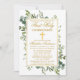 O Verniz Botânico Moderno Elegante de Aquarelas Primeiro Convite à Comunhão Santa inclui folhas de eucalipto e outras lindas folhagens. Dourada Cruz.