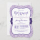Convite de festas de aposentadoria violeta violeta e branca, elegante. Convidado para primavera, verão, outono ou chás de aposentadoria no inverno, ano perfeito para a classe redonda. Convite de forma de suporte para a aparência de na moda. Olhar profissional; excelente para o trabalhador empresarial de homens ou mulheres.