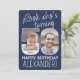 Olha quem faz 50 anos! Convide familiares e amigos para uma elegante celebração de 50 anos para ele ou ela com convites de festas personalizados de 2 fotos. Imagens e textos neste modelo são simples de personalizar. As cores azul e branca do marinho para o plano de fundo, texto e números podem ser personalizadas usando a ferramenta design Zazzle. (DICA DE IMAGEM: Uma maneira fácil de posicionar uma foto exatamente como você deseja é recortá-la antes de carregá-la no site do Zazzle. Se você precisar de ajuda adicional, por favor, me envie uma mensagem :) A design apresenta duas fotos de sua escolha, a caligrafia moderna e a tipografia do deco da arte de colheita de na moda. A design única e neutra em termos de gênero também é adequada para um homem ou para uma mulher. Feliz 50º aniversário!