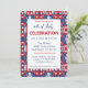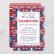 Celebre o dia 4 de julho com este convite patriótico personalizado de cores inspiradas, com estrelas e listras, design vermelho, branco e azul.
