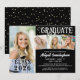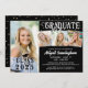 Crie sua própria aparência com este convite personalizado para festas de formatura coloridas com 4 fotos e títulos de tipografia de caligrafia decorativa para FORMANDO e CLASSE DE ANO acentuados com um boné de formatura ou placa-mãe e um confete de ouro falso. Todos os textos, gráficos, bordas de fotos e cores de fundo podem ser alterados para cores escolares ou para coordenar com suas fotos (mostradas em preto e branco). A parte traseira apresenta um confetti dourado opcional que pode ser excluído se não for desejado. ASSISTÊNCIA: para obter ajuda com a modificação ou personalização do design, alteração de cor, redimensionamento ou transferência do design para outro produto, entre em contato com o designer ANTES DE ENCOMENDAR através da guia MENSAGEM de Bate-papo Zazzle abaixo ou envie um email para makeitaboutyoustore@gmail.com.