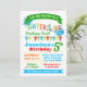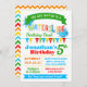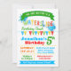 Convite para aniversários em água, esquema de cores primárias adequado para qualquer idade. Adicione seu próprio texto ao modelo, para mais personalização (cor da fonte, estilo da fonte, fundo), clique em personalizar, role para baixo e clique no link "clique para personalizar ainda mais".