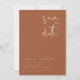 Esta opção de salvar a data apresenta uma fonte escrita à mão e um design minimalista moderno. Edite facilmente o texto *maioria* para atender às suas necessidades e edite todas as cores de seu gosto. A combinação de cor de laranja queimada pelo tom da Terra boêmica faz dela a adição perfeita ao seu boho, deserto ou casamento terrestre.