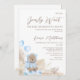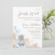 Corner Floral Boho Nós podemos esperar Chá de fraldas Convidado para Esperar Rapaz Podemos esperar que o bebê chegue ao convite do chá de fraldas com um título de caligrafia moderno, um arranjo floral de cor aquática boho com rosas azuis e grama pampas, um urso fofo vestindo um casaco azul e balões em forma de coração. Excelente para o chá de fraldas de um menino.