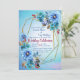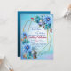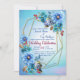 Molduras de ouro geométricas decoradas com um buquê de flores azuis, em cor d'água, com botões vermelhos e folhas verdes ouros para personalizar. Este papel de carta moderno é perfeito para qualquer celebração ao ar livre em um jardim de verão como para um casamento.