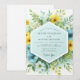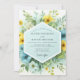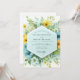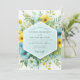 A delicate watercolor arrangement captures the bright and cheerful spirit of a spring affair. Vibrant yellow blossoms and soft cornflower blue anemones bloom amongst sprigs of fresh greenery and dainty white florals. This artistic and romantic design evokes the feeling of a sunlit meadow, perfect for a joyful union.
