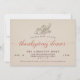 Este convite clássico apresenta uma ilustração cornucópia junto com elegante laranja queimada e tipografia de marrom para convidar amigos e família para o janto de Ação de Graças. Como a frente, a parte de trás tem um clássico papel pergaminho.